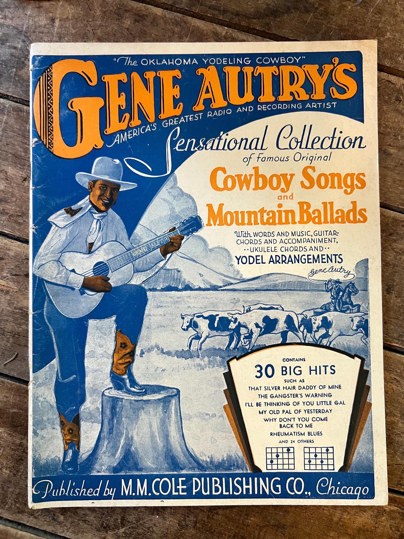 Antique 1930s Gene Autry’s Cowboy Songs and Mountain Ballads - Vintage Sheet Music - M.M. Cole Publishing Co. Chicago- Made in USA