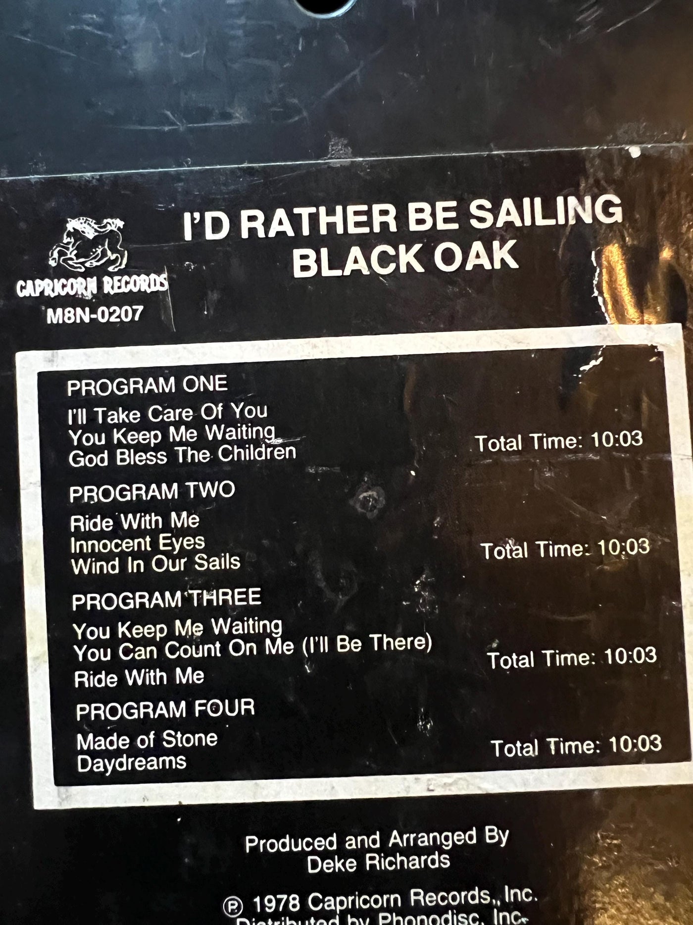 1978 Black Oak “I’d Rather Be Sailing” - Capricorn Records 8-Track Tape