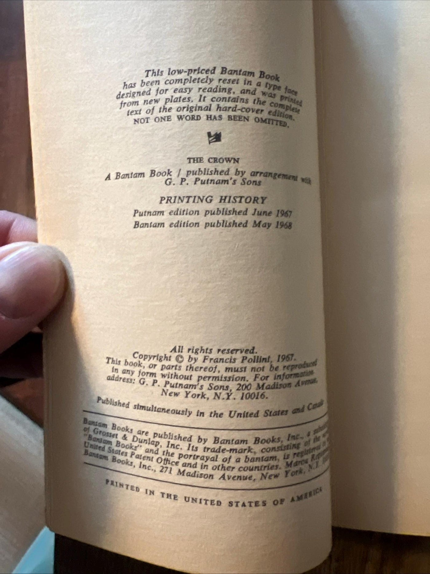 The Crown by Francis Pollini ( 1968 Bantam Books Paperback)