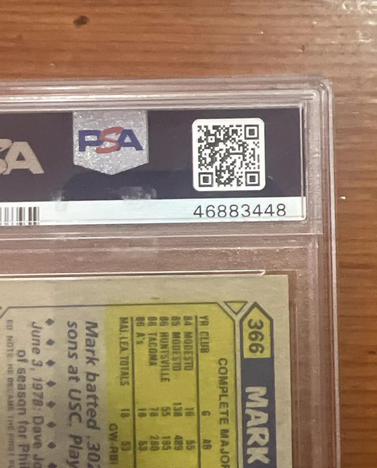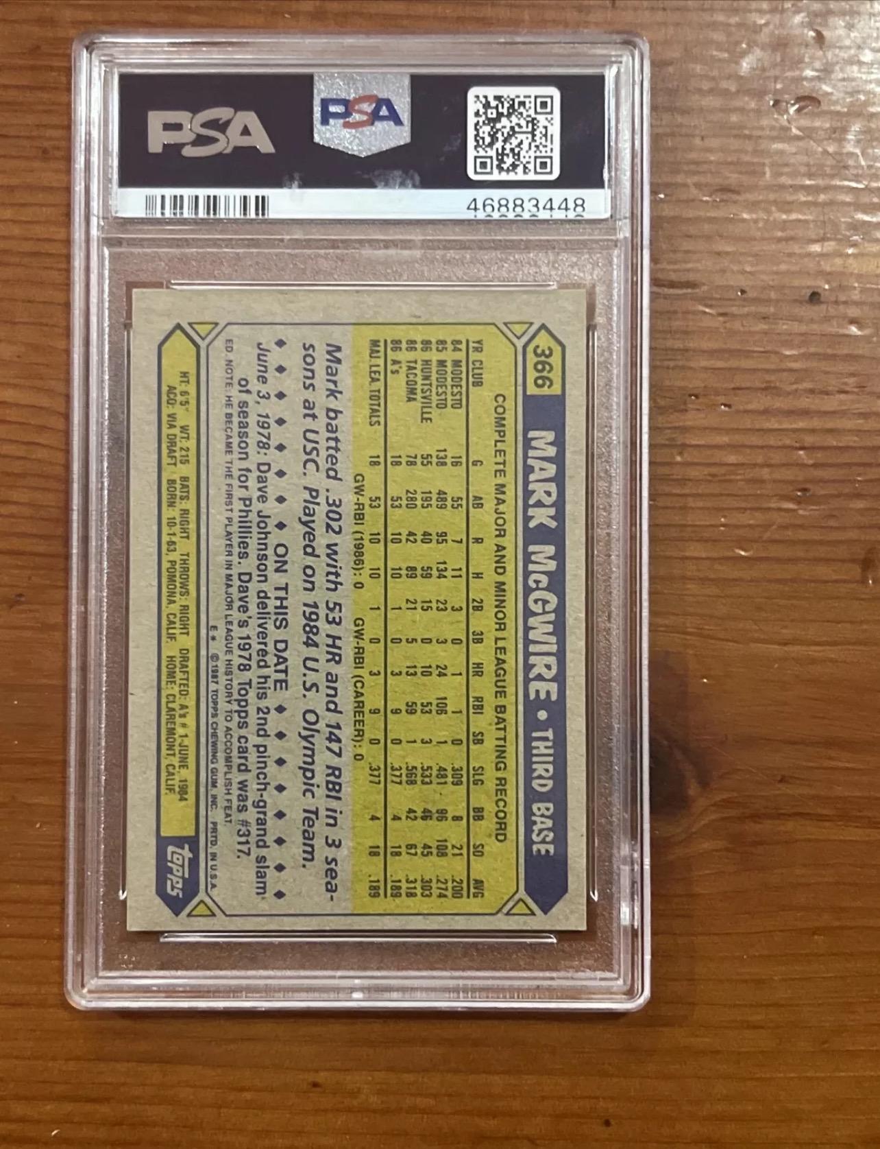 1987 Topps Mark McGwire Rookie Card - Oakland A’s - PSA 7 Graded