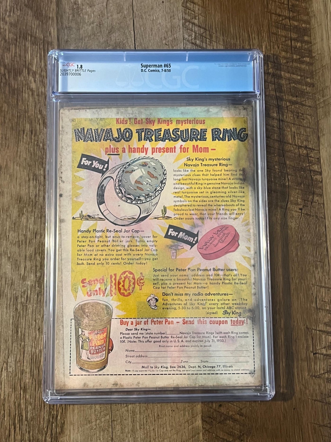Vintage 1950 Superman DC COMIC #65 / Graded Comic CGC 1.8 / First appearance of Mala, Kizo, and U-Ban Krypton Foes - Key Issue