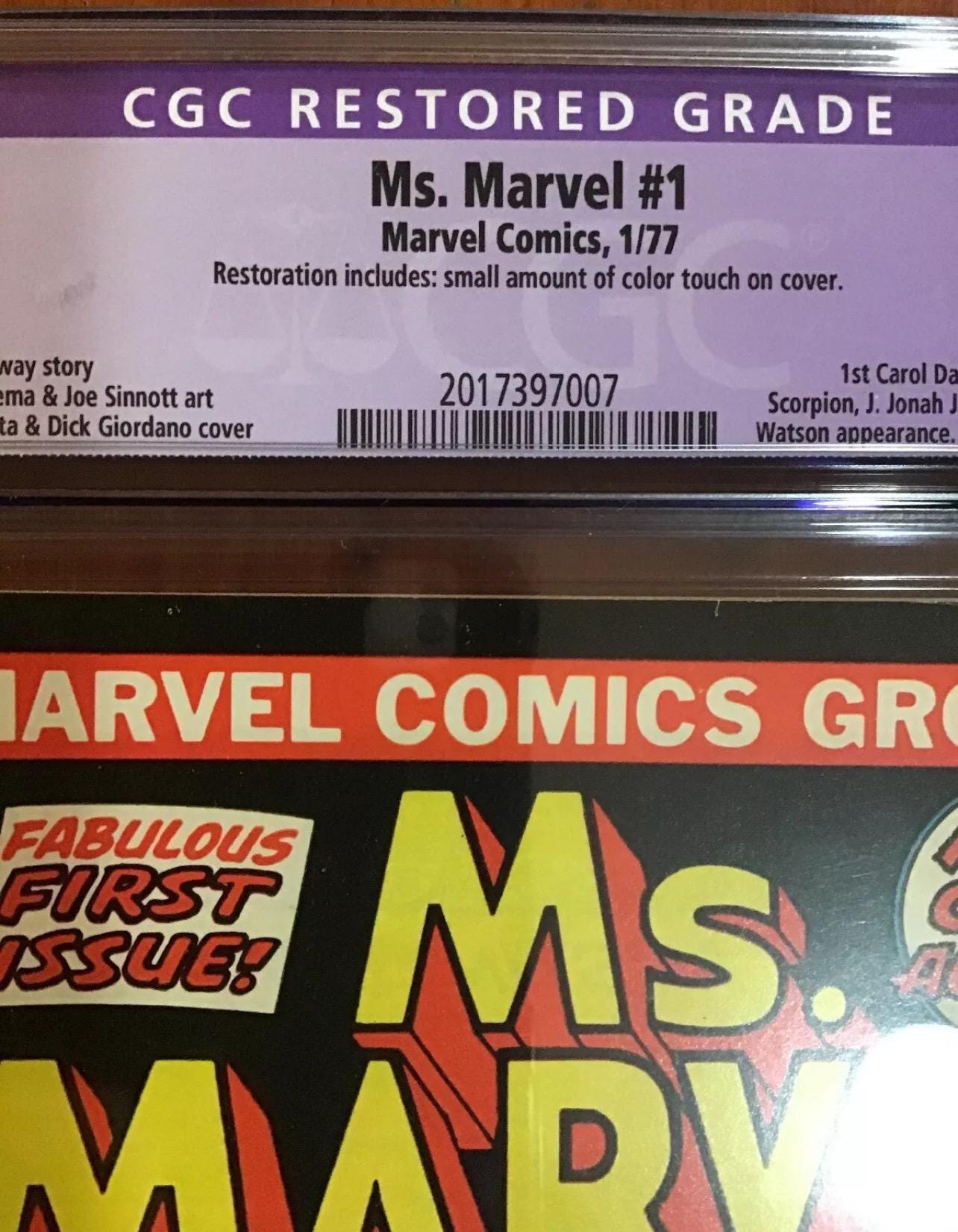 Vintage January 1977 Ms Marvel MARVEL COMIC #1 / Graded Comic CGC 8.0. / First appearance of Carol Danvers as Ms. Marvel Please check all pictures for condition - Restored Grade CGC Shipped with USPS Priority Mail & insurance check about all my vintage COMIC BOOKS & ACTION FIGURE COLLECTIBLES !