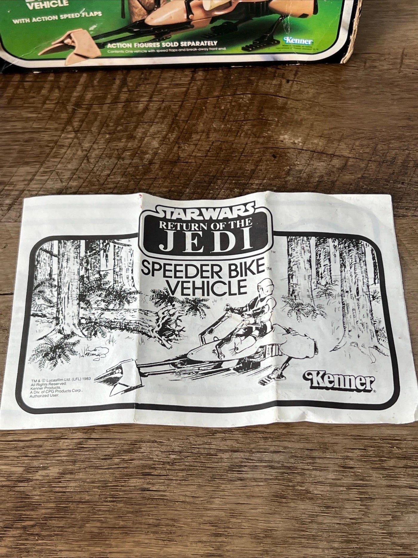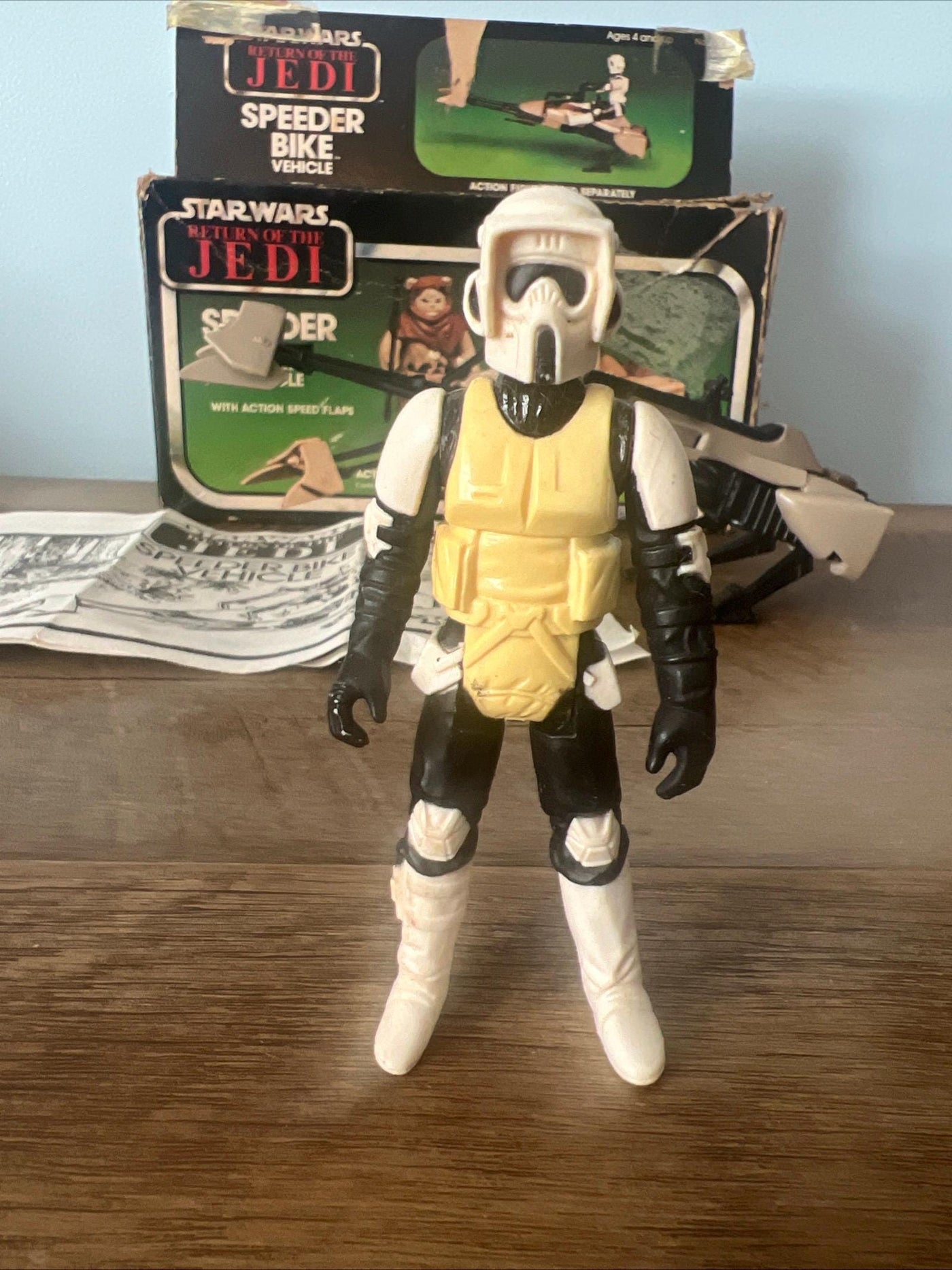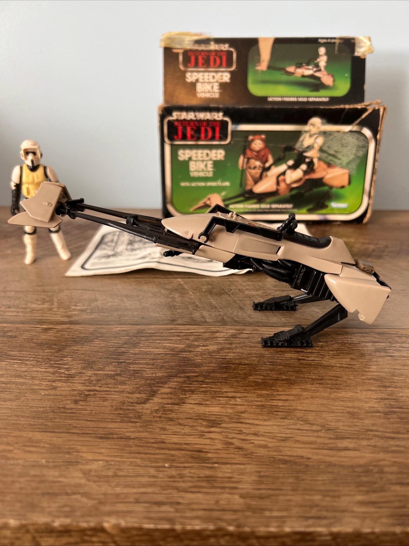 1983 Kenner - Star Wars Return Of The Jedi Action Figure SPEEDER BIKE & Original Box with instructions also included in this auction is the original Storm Trooper SPEEDER BIKE action Figure