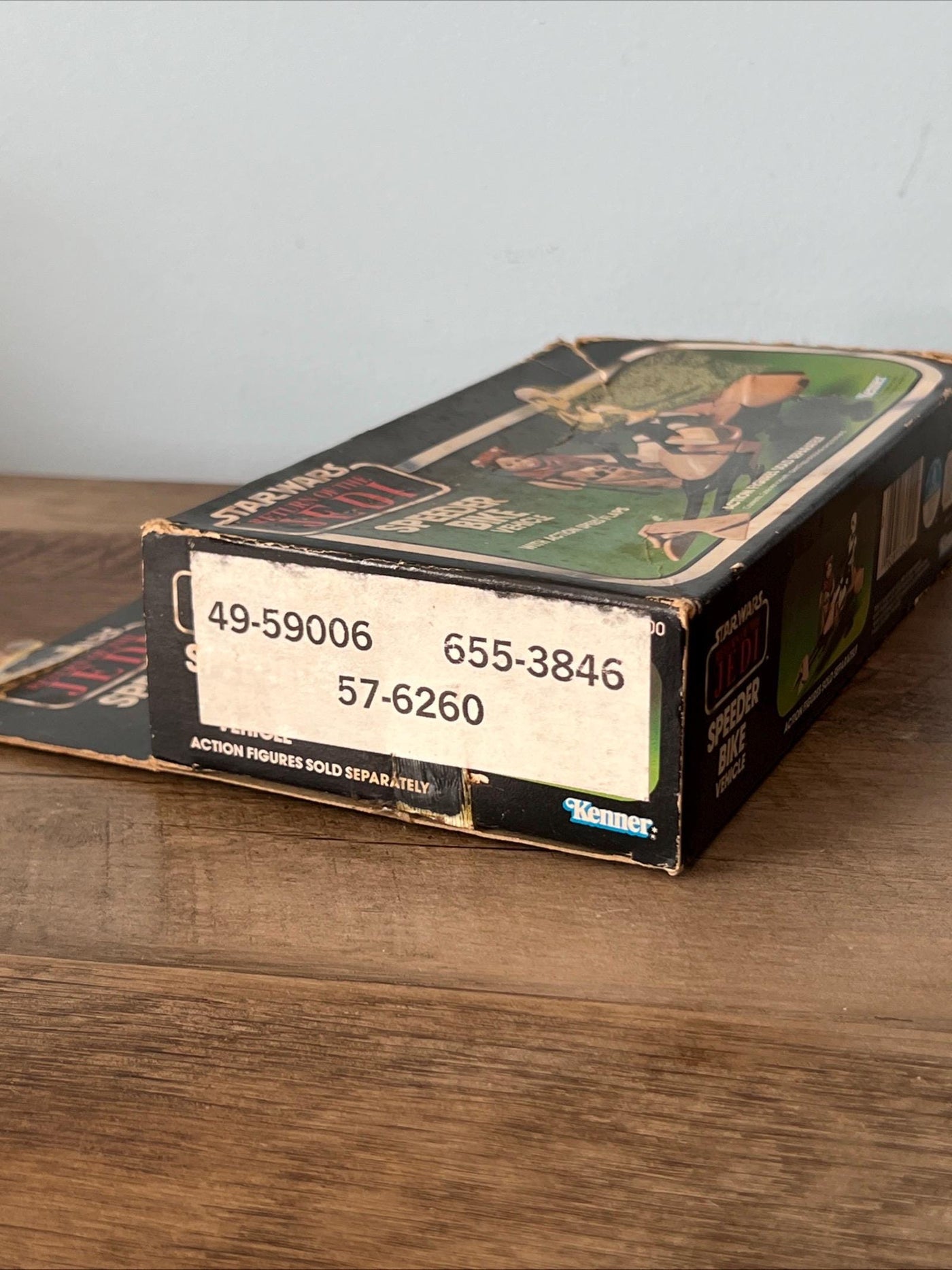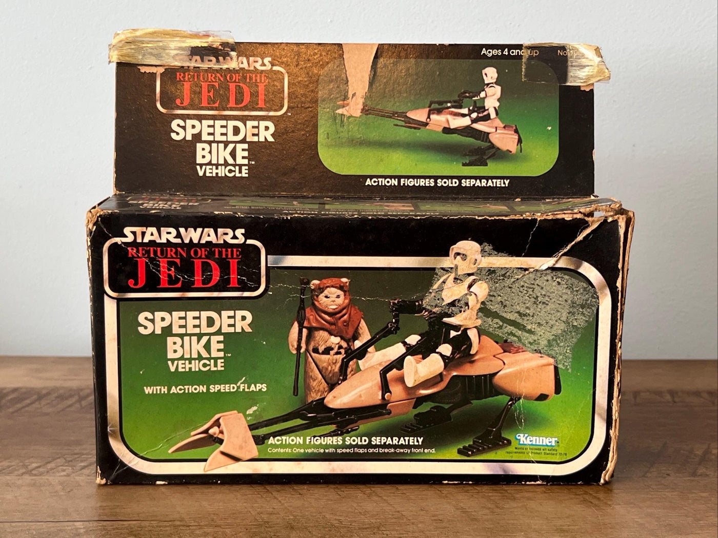 1983 Kenner - Star Wars Return Of The Jedi Action Figure SPEEDER BIKE & Original Box with instructions also included in this auction is the original Storm Trooper SPEEDER BIKE action Figure Please check all pictures for Condition, the box has damage and old tape repair, as well as a sticker on the one end The box with flap measures 7 3/4 x 9 x 2 1/4 inches approximately Check out all my vintage FIGURES & other tools, toys and collectibles
