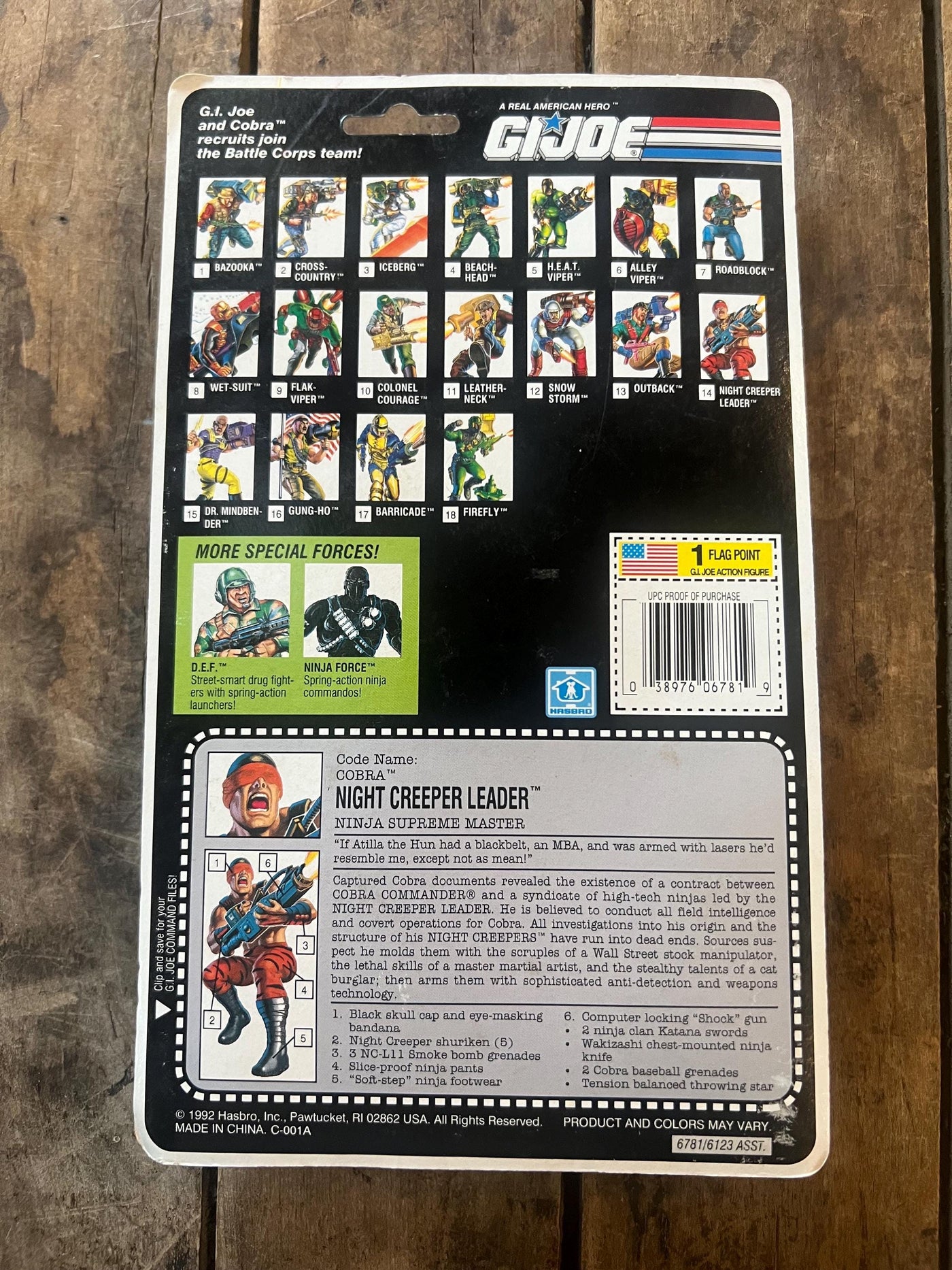 1992 Hasbro GI JOE ARAH - Battle Corps - COBRA NIGHT CREEPER LEADER - Action Figure - Sealed on Original Card MOC