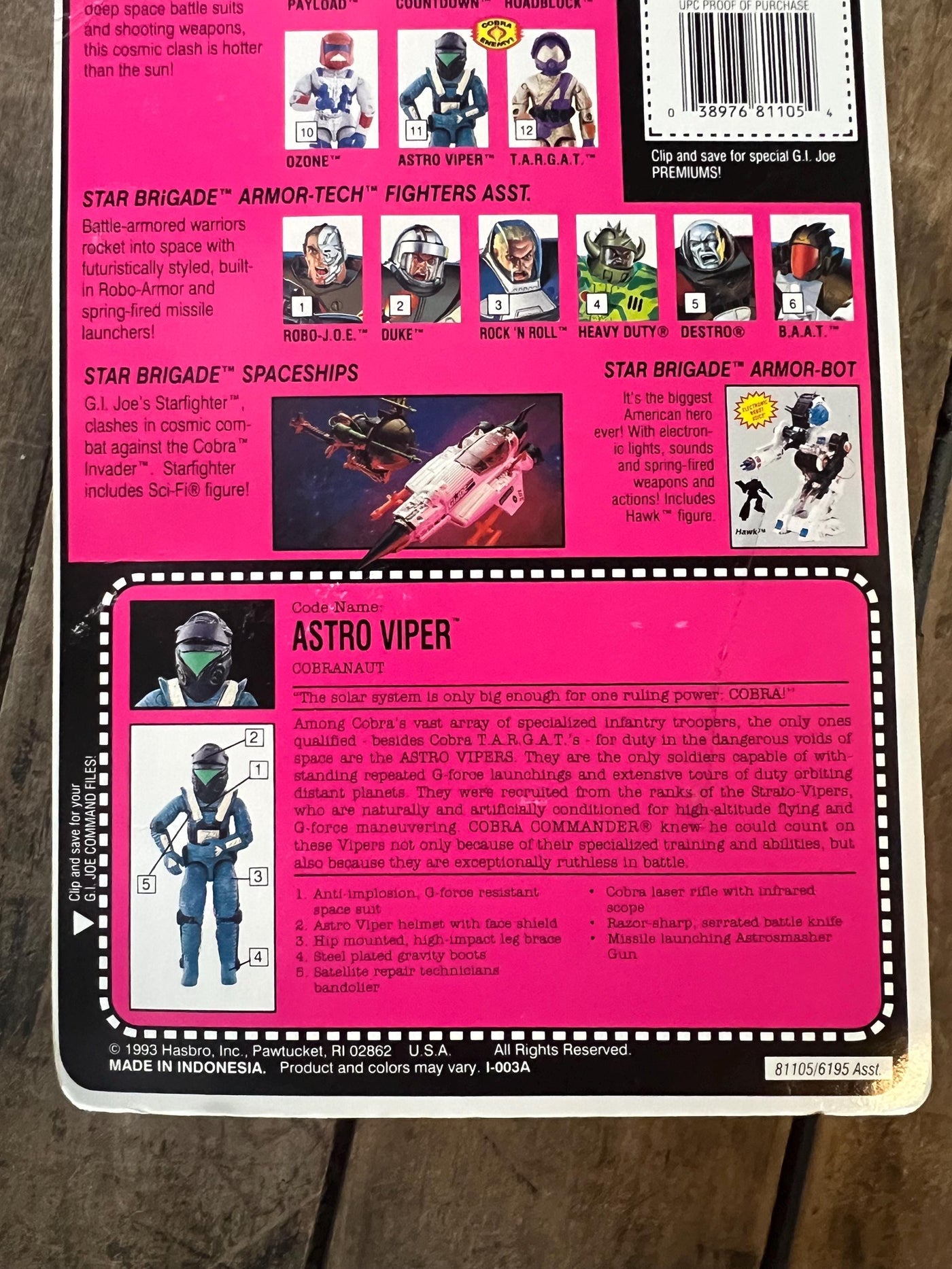 1993 Hasbro GI JOE - ASTRO VIPER : Cobranaut V2 - Star Brigade Action Figure COMPLETE ON ORIGINAL CARD MOC - ARAH