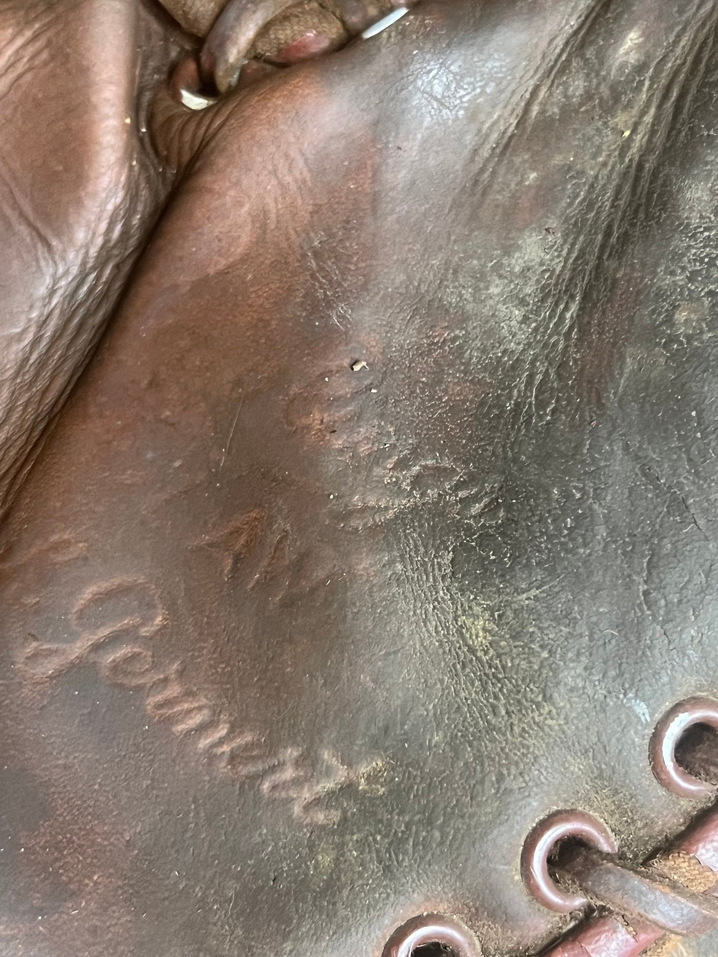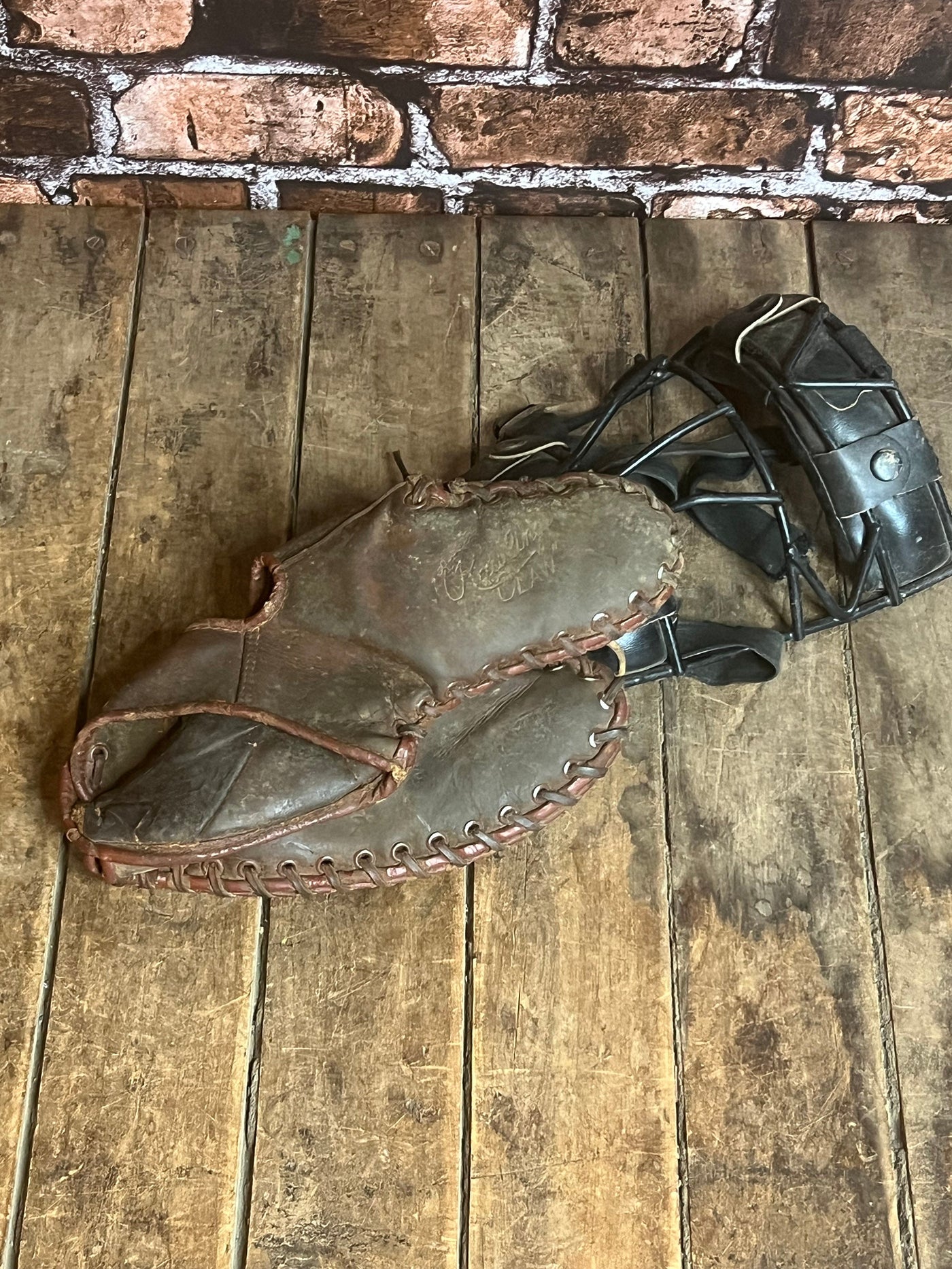 Please check all pictures for condition, the glove is stiff and in poor condition the glove wears 12 x 7 x 2 inches approximately