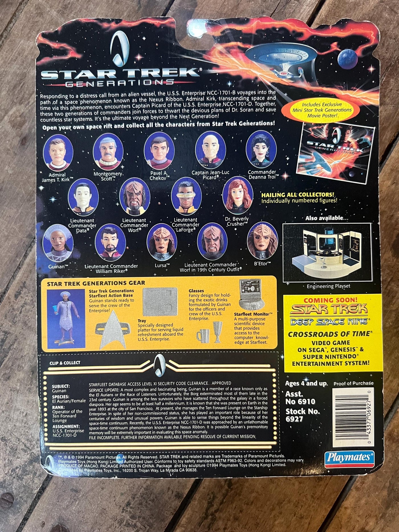 Vintage 1993 Playmates - STAR TREK GENERATIONS - Hostess Guinan - Complete Original Sealed On Card - 5 Inch Action Figure Please check all my pictures for Condition, this is a new sealed card, the bubble has some crush damage, and the card also has damage. The card measures 10 3/8 x 7 3/4 x 1 3/4 inches approximately Check out all my vintage STAR TREK FIGURES & other tools, toys and collectibles -