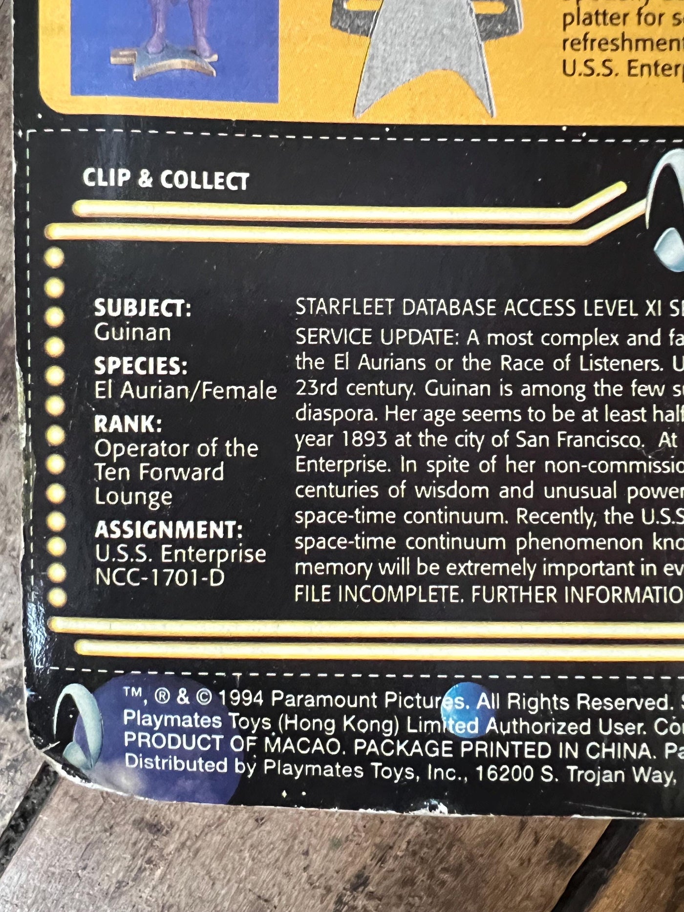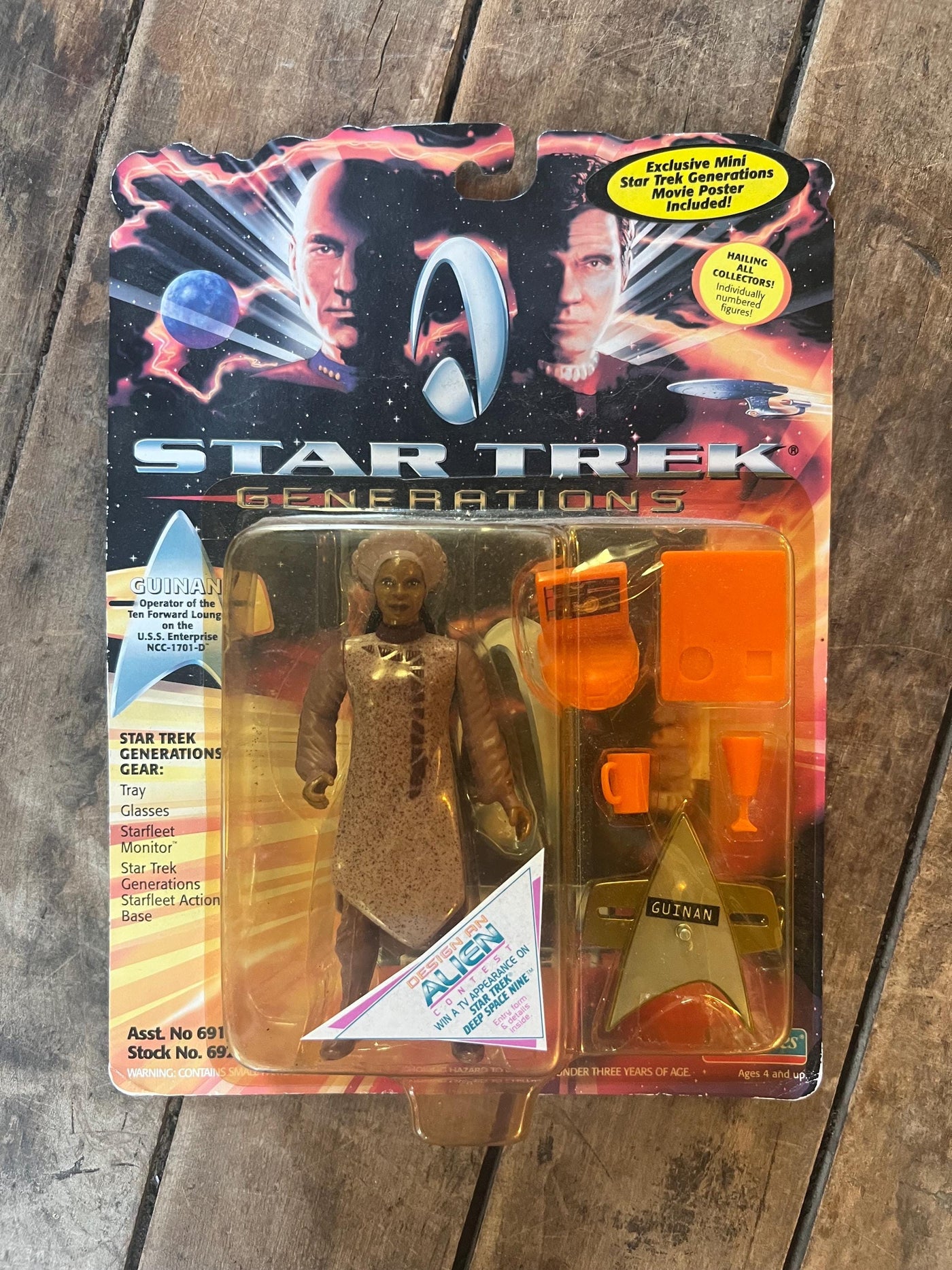 Vintage 1993 Playmates - STAR TREK GENERATIONS - Hostess Guinan - Complete Original Sealed On Card - 5 Inch Action Figure