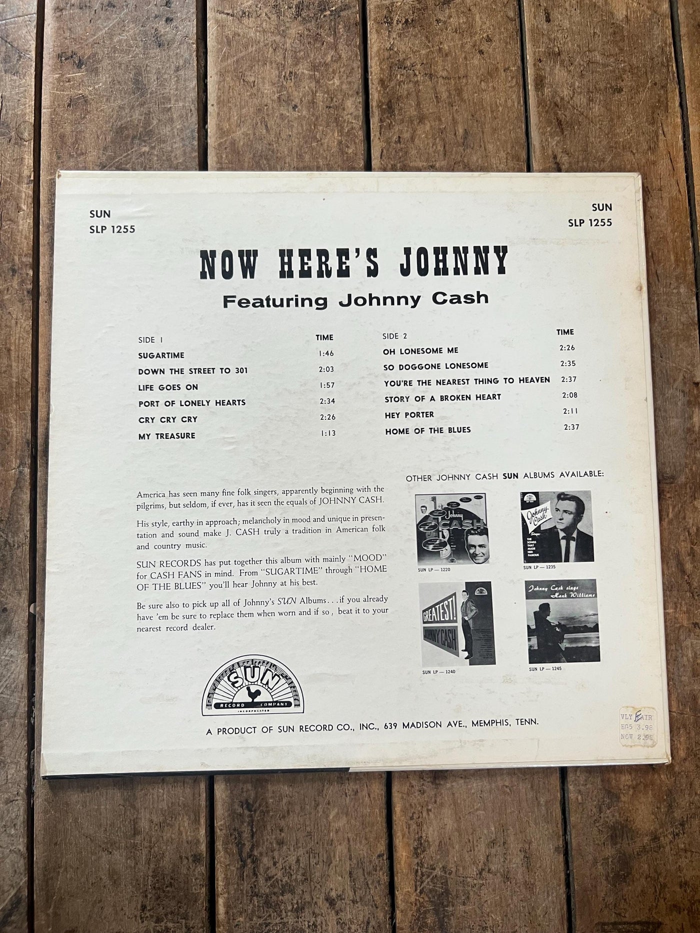 Johnny Cash “Now Here’s Johnny Cash” - Retro Vinyl - 1961 Original LP Record - Sun Records - Country