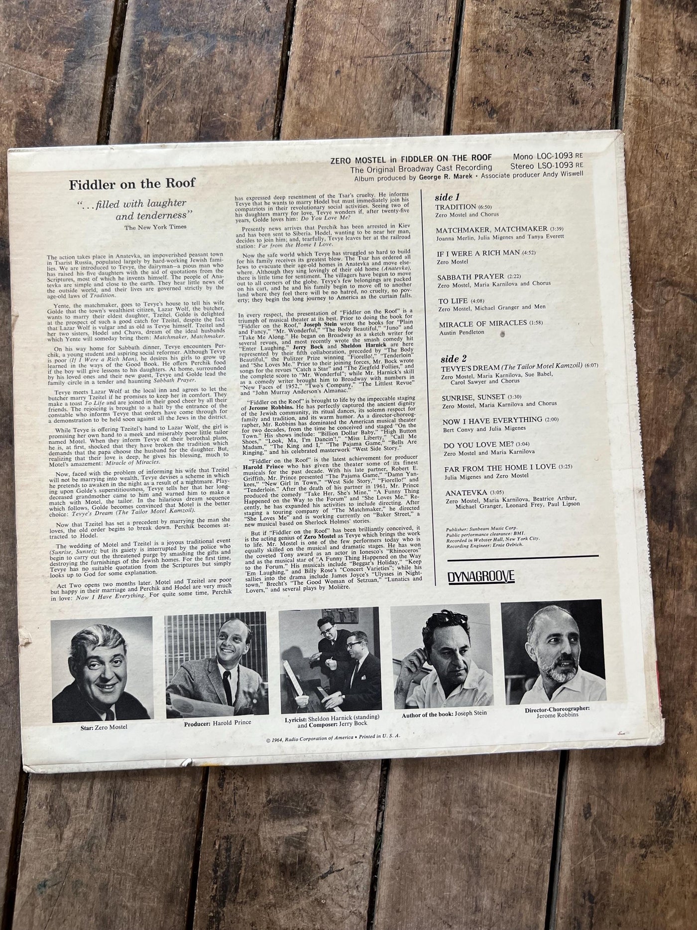 Zero Mostel “Fiddler On The Roof” ( Original Broadway Cast Recording) - 1964 RCA Victor Record - LP Vinyl Album